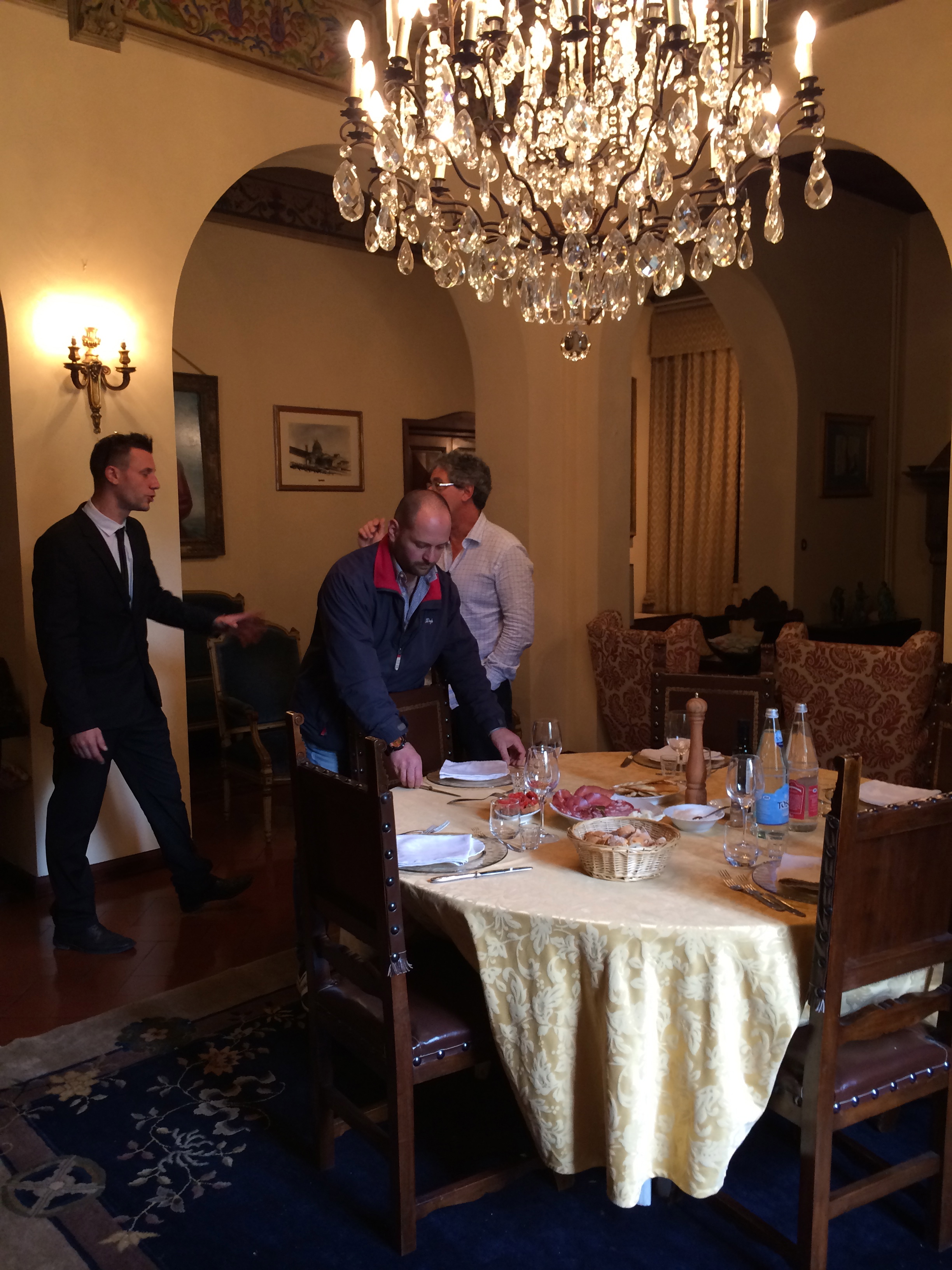 We are bringing along two bottles of wine, one of our homemade Brunello and one from a winery we visited this summer while we were in Florence, Castello Monterinaldi. We had the most elegant lunch inside the elegant villa.
