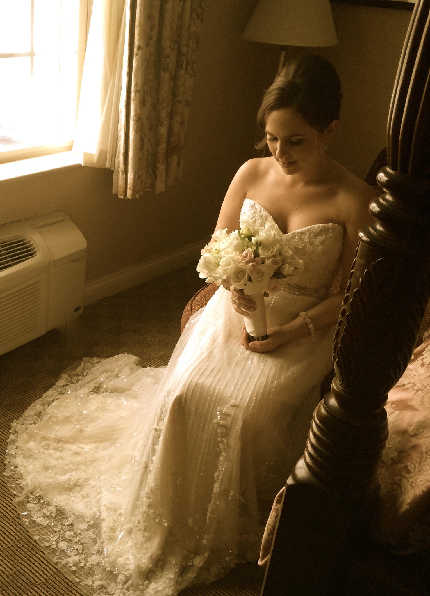 I can’t believe it’s been a year since our daughter Katie’s wedding. The day began with overcast skies and snow began to fall right when we were all driving to the venue for more photos, about 2 1/2 hours before the ceremony. The roads were snow-covered and some were even closed; but we all made it and the snow eventually stopped – making for some beautiful photos.