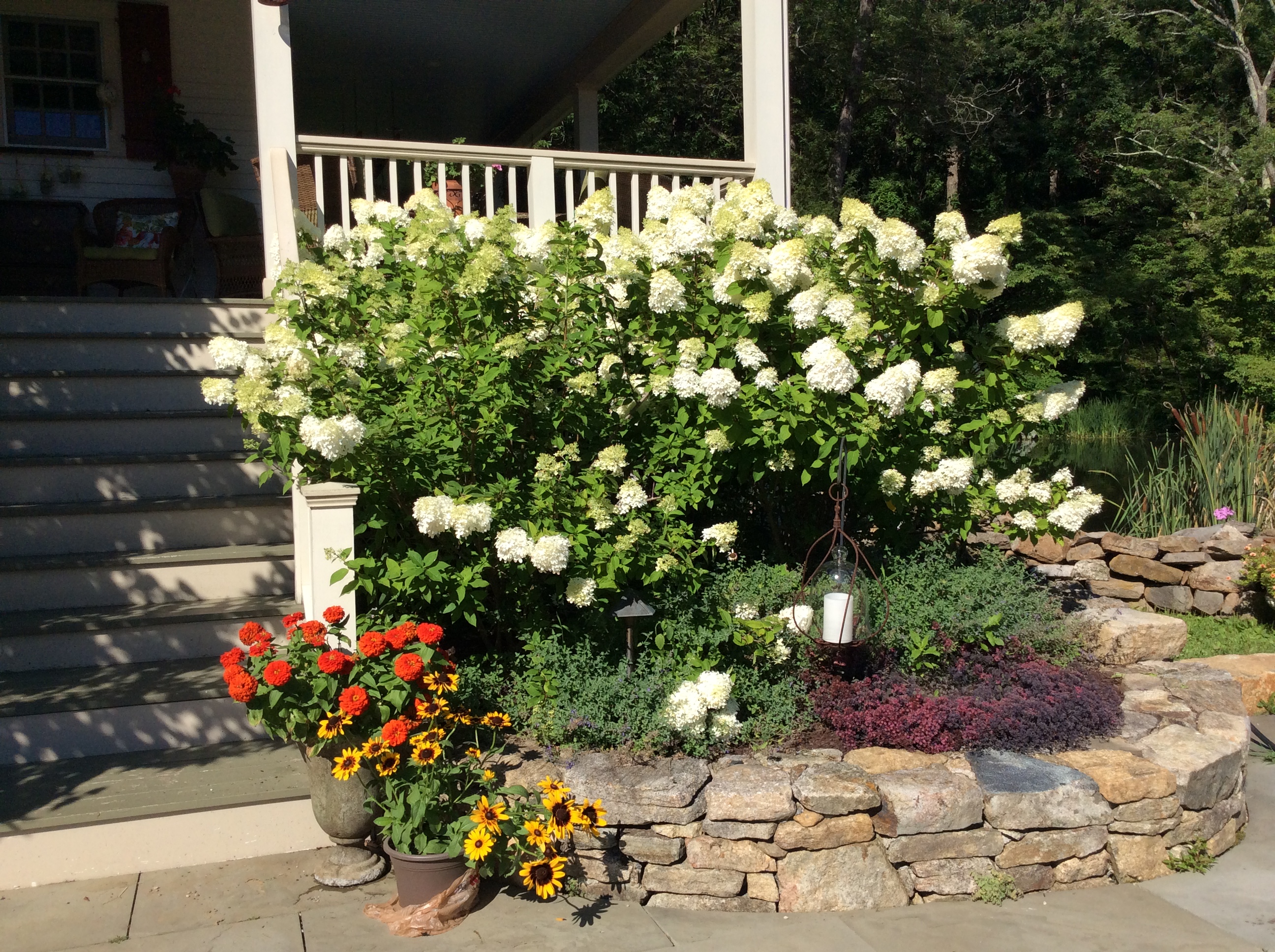 Limelights below – so lovely and overwhelmingly abundant each year. These plants face east and are just gorgeous – they are actually dwarfing several large daisy plants between them. We’ll have to find those daisies a new home.